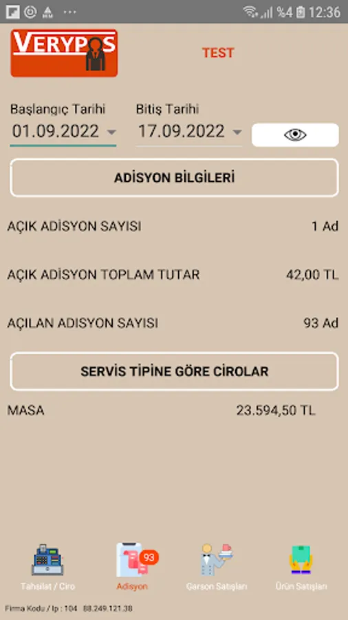 This application is the application where business owners using VeryPos restaurant software monitor their sales, turnover, number of open tables, waiter sales and products sold.