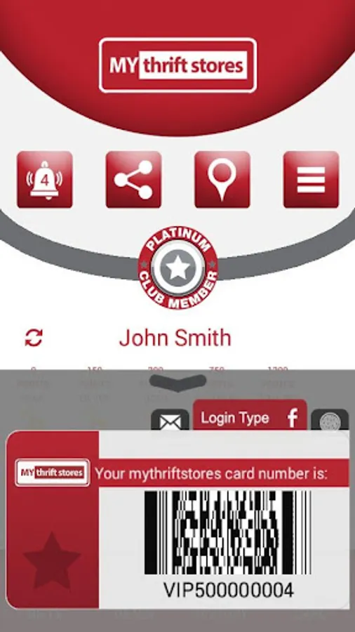 Specialized app for MYTHRIFTSTORES VIP customers to track reward points, receive daily deals/coupons, converse through social media, and stay informed on their own Rewards Program benefits.