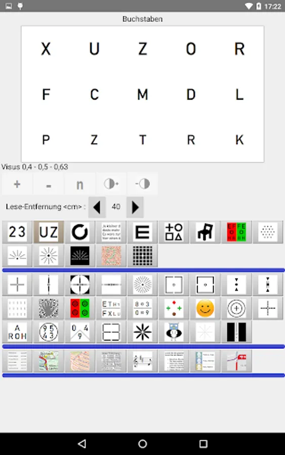 Test charts for testing the near vision, that are displayed on a tablet PC using the VisucatControl app can now be controlled by the examiner using the Visucat-N-Control app on a second device.