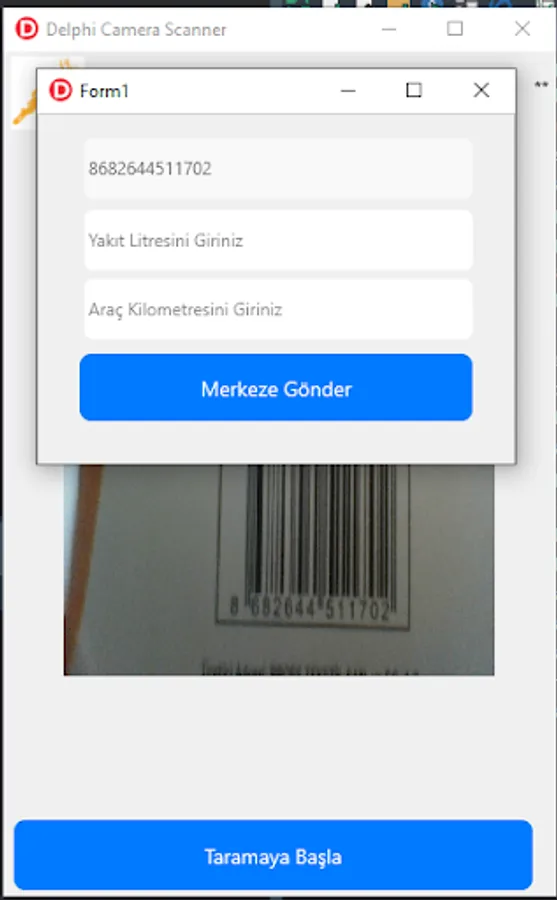 Sending the fuel purchased for the vehicle to the center by scanning the barcode.