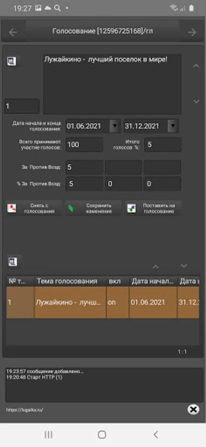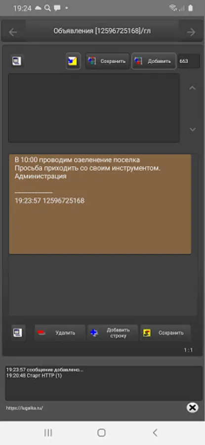 admission to voting. Usually, the listed parameters, with the exception of id, are set at the general meeting. They are stored in the program settings. When authorizing a new instance, the parameters from the settings are copied to the alle card. In fact, the chairman needs to enter the 2nd id. Residents of one family, one TSN / SNT plot, one apartment are allowed to have several alle programs. In this case, all alle instances must have the same unique id. This is done so that family members can independently connect phone numbers to the barrier. Many alle programs of the same family (plot, apartment) will store the same data. The operation of the "alle_center ... ale" system can be described as follows - each instance of alle appeals to alle_center with a request - my payments for the last three years have been sent to my unique number (payment id) or connect the phone number to the barrier, etc. Alle_center has a built-in mechanism for loading tables from a file to fill in payment tables, telephone numbers for a barrier. The chairman has the ability to disconnect any alle application from the system (deactivate). A few words about the bulletin board, chat, voting. The bulletin board is the place where the administration's messages are published. The chairman has the right to post a service message on the notice board. During the authorization process, the chairman can delegate the right to post a message on the board to any alle application. Then alle will act on behalf of the administration. The chairman can terminate alle's bulletin board authority at any time. Chat is a place for the exchange of views by residents of TSN, HOA, SNT. By default, each resident can post his message in the chat. Violation of communication ethics may lead the chairman to disable the alle application from being able to post his message to the chat. alle_center provides voting on various agendas of the administration, board, general meeting. alle the application asks alle_center to send the agenda on which the vote is in progress. For each issue on the agenda, an array is formed - the range of dates for voting (from date to), the number of residents voting. Online voting statistics - for / against / abstained. Multiple voting is allowed on the same issue within a given date range. The last vote is taken into account. And the last thing. alle_center can be installed on multiple devices. By default alle_center has the status "main application". Those. alle_center coordinates alle's work independently. If you select the "sharing" status in the settings, then in alle client applications the data from different alle_centers will be summarized. Alle_center status - "subordinate application" assumes that the subordinate works with the main one similar to the client application, but with somewhat more functionality. alle_center has a help system. Pressing the button with the "?" displays a quick help.