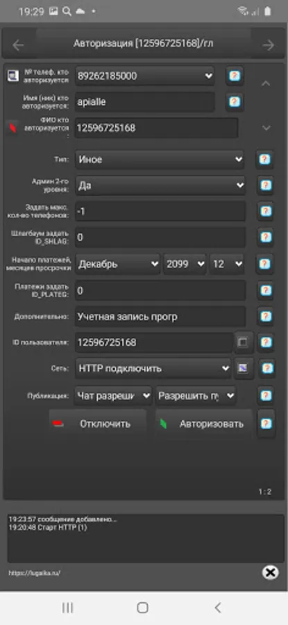 alle_center - application for the chairman of TSN, HOA, SNT. alle_center stores a general register of residents, tables of payments, tables of telephone numbers connected to the barrier, tables of votes, announcements, chat, and settings tables. Alle_center's job of managing alle applications begins with their application to connect. Having received in the process of authorization the data about the resident (phone number, nickname, full name), the chairman assigns unique numbers to each resident (alle instance) - payment id and barrier id. If accounting for alle_center starts with a blank slate, then the chairman assigns unique payment id and barrier id arbitrarily. They may be the same. In the case when it is necessary to load payments from the accounting department into alle_center, the payment id may coincide with the account data. accounting. It is important that each resident has his own unique numbers in the alle_center system. Authorization is needed to assign each alle 2 unique numbers, the allowed number of phones for connection, the allowed number of months of delay in payments,
