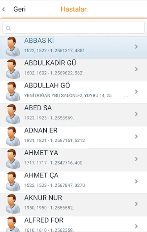 All the screen to search, find and supports patients NFC device. Write NFC