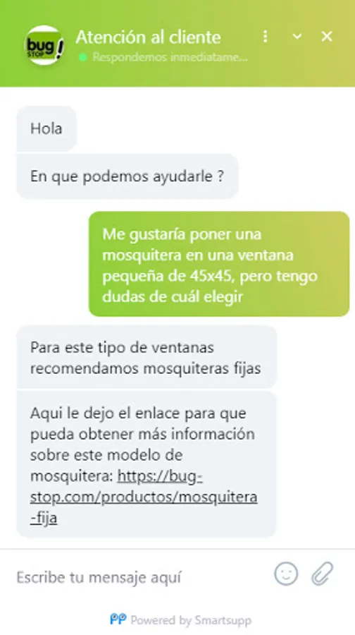 We have a support team that offers you continuous advice before, during and after your purchase at Bug Stop. You can contact us through our chat or our email to ask us any questions. We will be delighted to assist you!