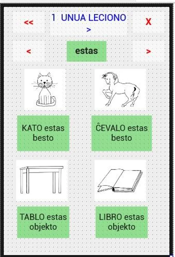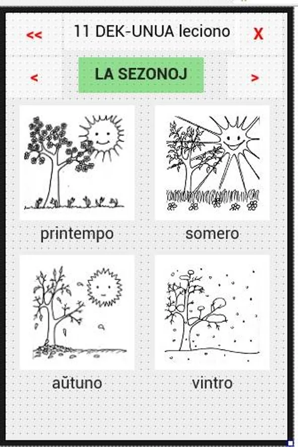 Kiam la titolo de ekrano (la lecionnumero) estas blua kaj kiam oni tuŝas gin aldonaj eksplikaj bildoj aperas.