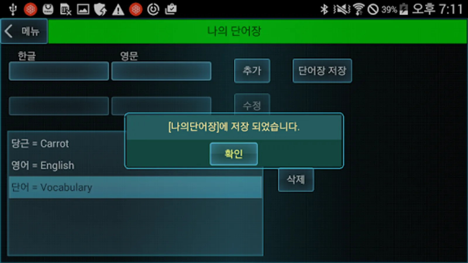 2. In case of memorizing words, we changed the output of Hangul and English simultaneously so that it appears in English after Hangul output.