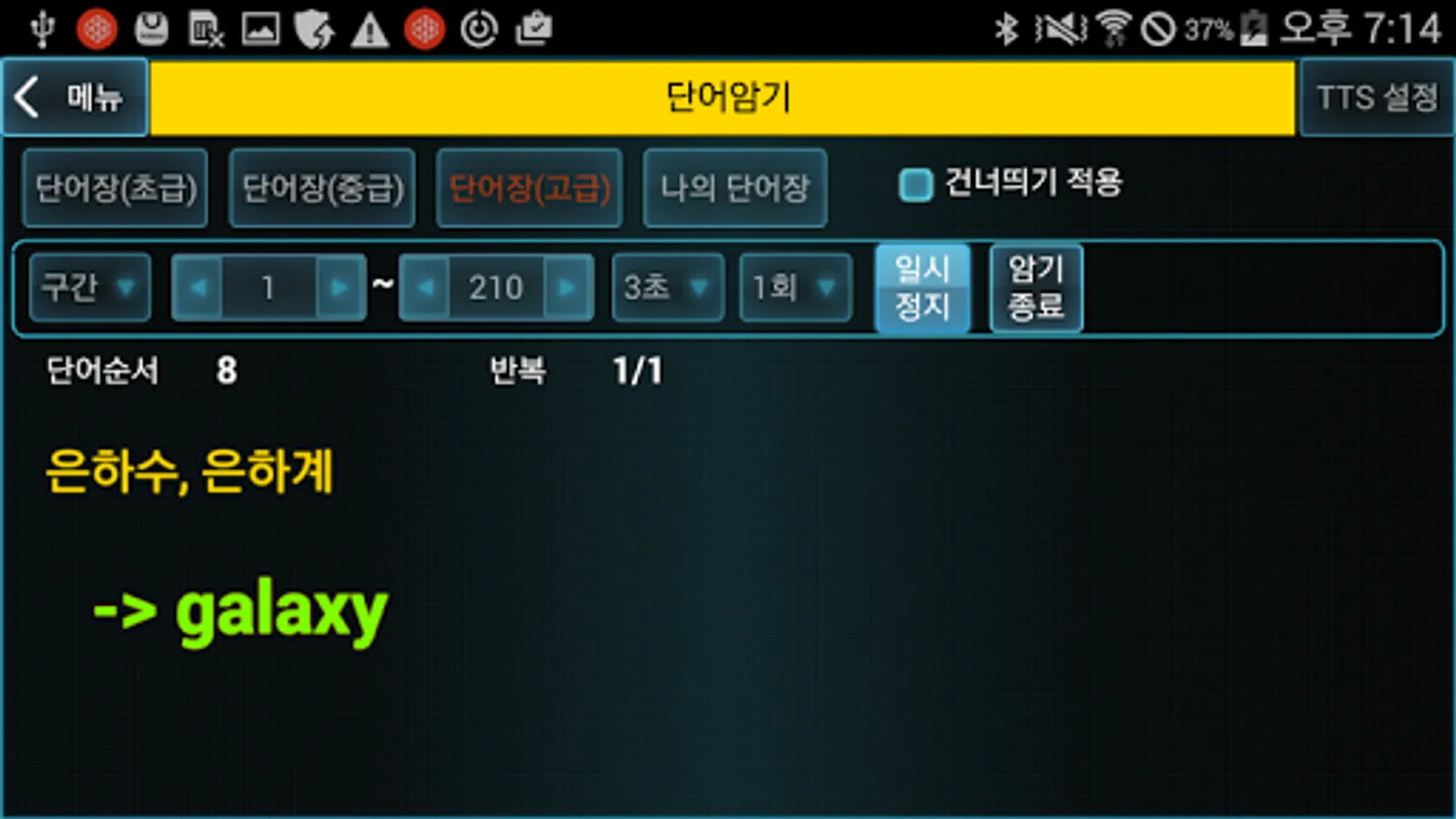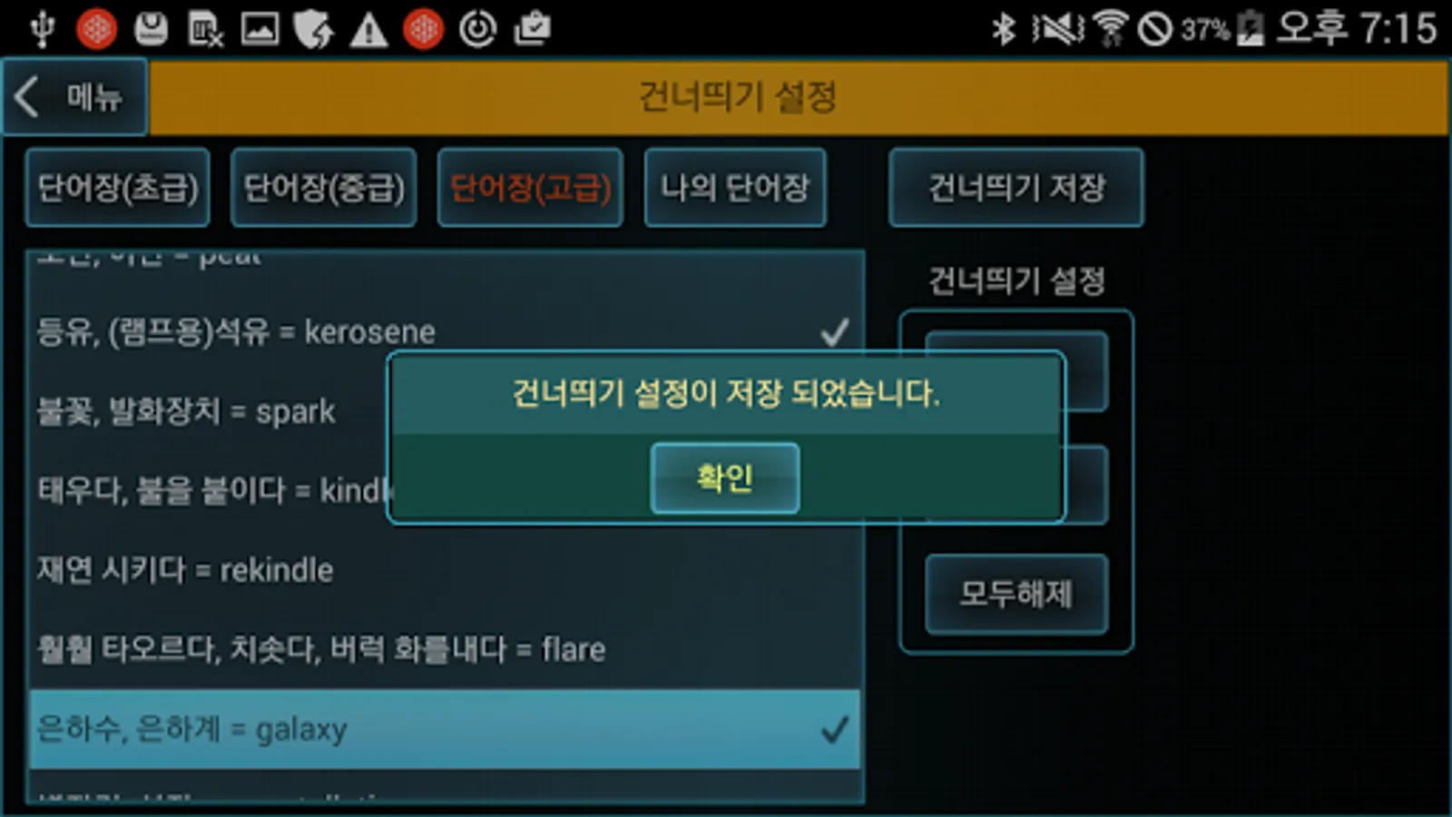 * Skip setting: When you memorize a word, you can set the skip word that you do not need to memorize anymore.