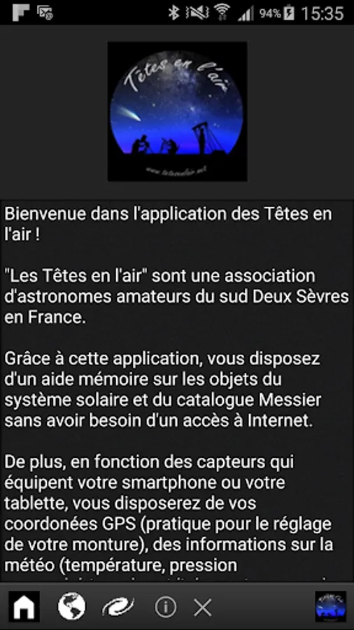 This application details the solar system and the Messier catalog. Photos and drawings are from Wikipedia or members of Sky Stuff.