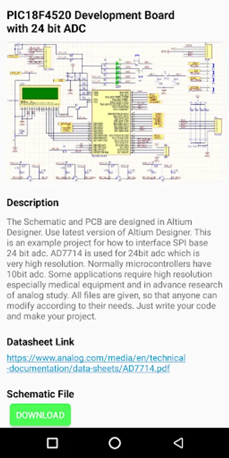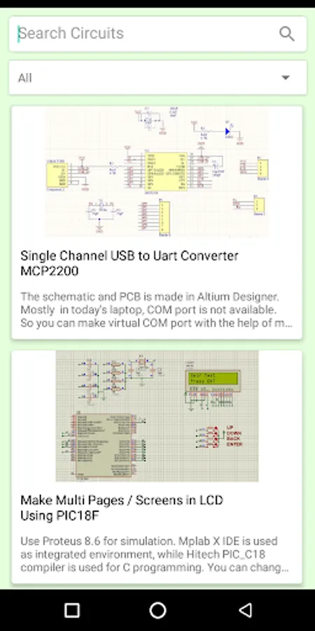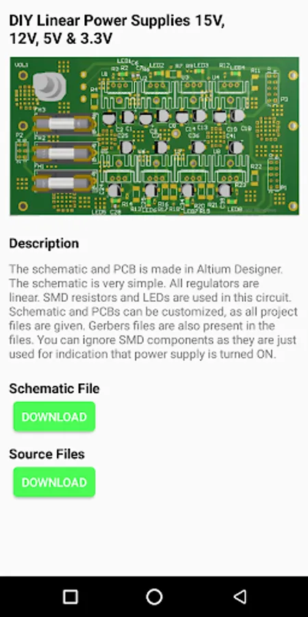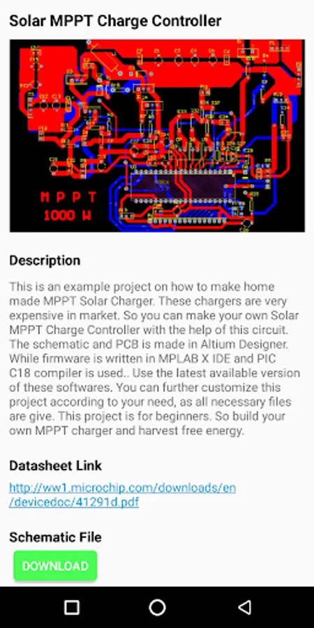 The app allows provides all the circuit and project files. So you don't need to bother about surfing on internet for a basic circuit or project. This app contains all files you need like pictures, pdfs, datasheet link and software files.