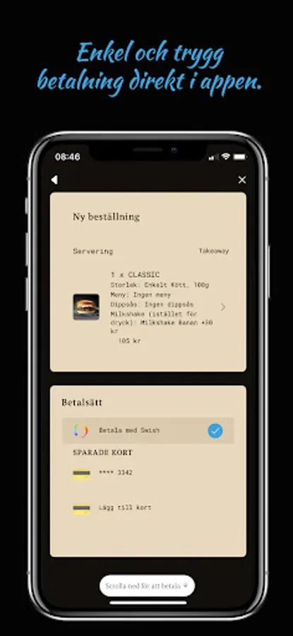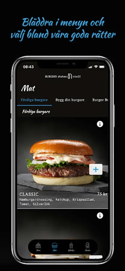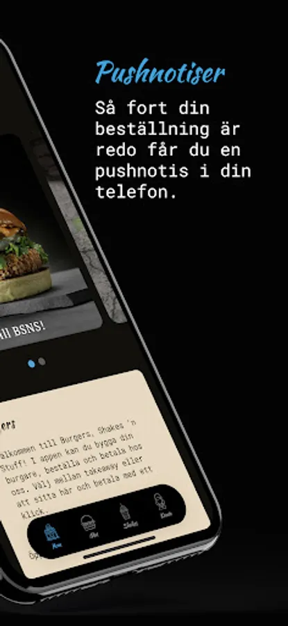 In the app, you can build your burger or choose from our ready-made options. Choose between takeaway or to sit here and pay with a click directly in the app.