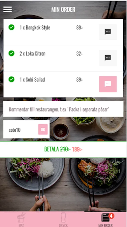 Order takeaway food in Sobi in Orebro through our app. All payments are in the app and you'll receive updates on the status of your order. Come and get food without the fuss. Right now you get a discount when you order through the app