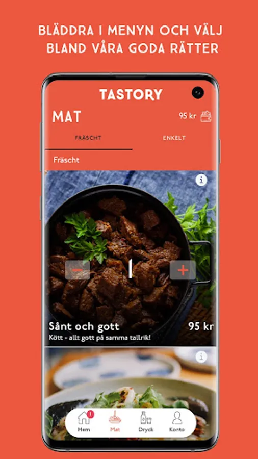 We offer our guests fresh food prepared from scratch from good ingredients. In the buffet you will always find a variety of exciting green dishes and accessories - perfect to combine with your choice of today's fish, meat and / or vegetarian. In our cooking, we draw inspiration from the world's flavors, and prepare it in Tastory's way!