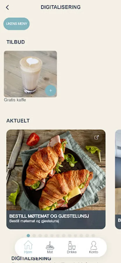 Through the app, you can order and pay for food and drink in our staff restaurants and coffee shops - right from the phone. In addition, you earn loyalty points, you can buy surplus food, take part in exclusive offers and news and you can browse through weekly menus to plan your days.