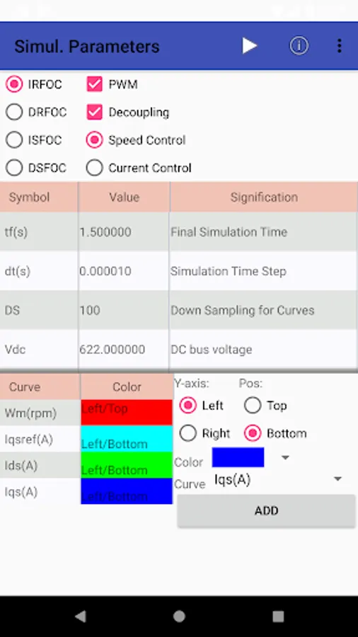 The FOC Field Oriented Control of IM App helps students and teachers to study and understand the vector control of the Induction Machine and its transient behavior.