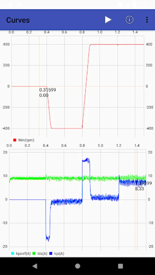 Several events can be applied during the simulation, such as changes in load torque at different times, reference speeds and reference currents Idsref and Iqsref, as well as resistive parameter variations.