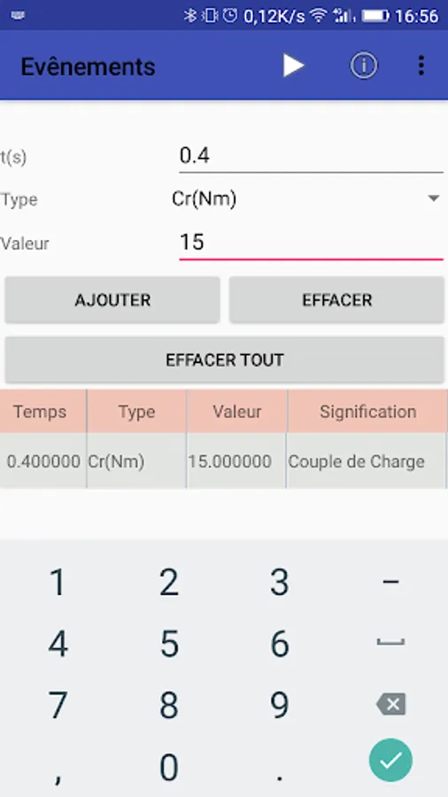Multiple events can be applied while simulation is in progress, like load torque changes at different instants.