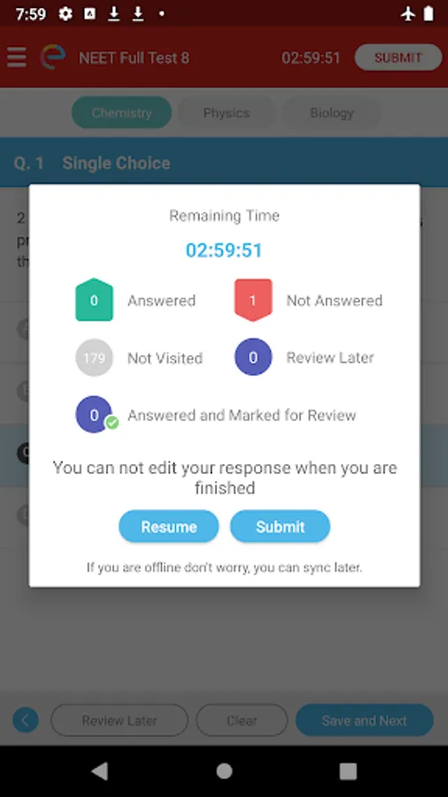 1) Offline app that requires internet connectivity only to download questions and sync your attempt data