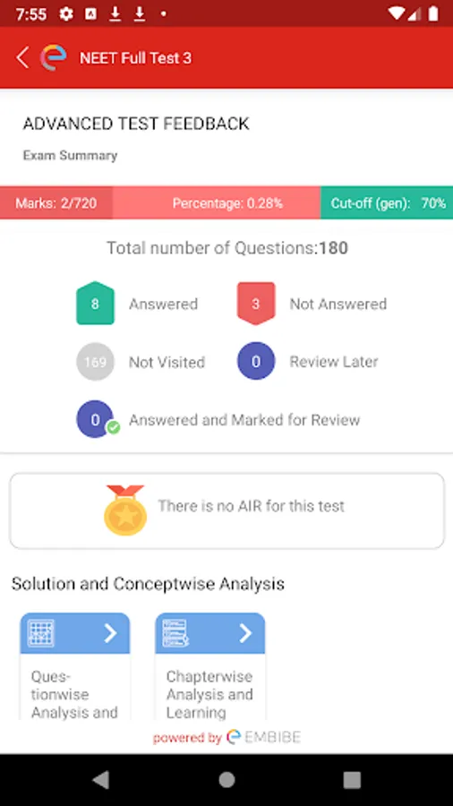 The app is powered by Embibe, a platform that has revolutionized E-Learning in India. Embibe uses data analytics to provide advanced test analysis that pinpoints the exact areas a student is lagging behind.