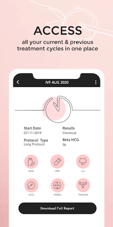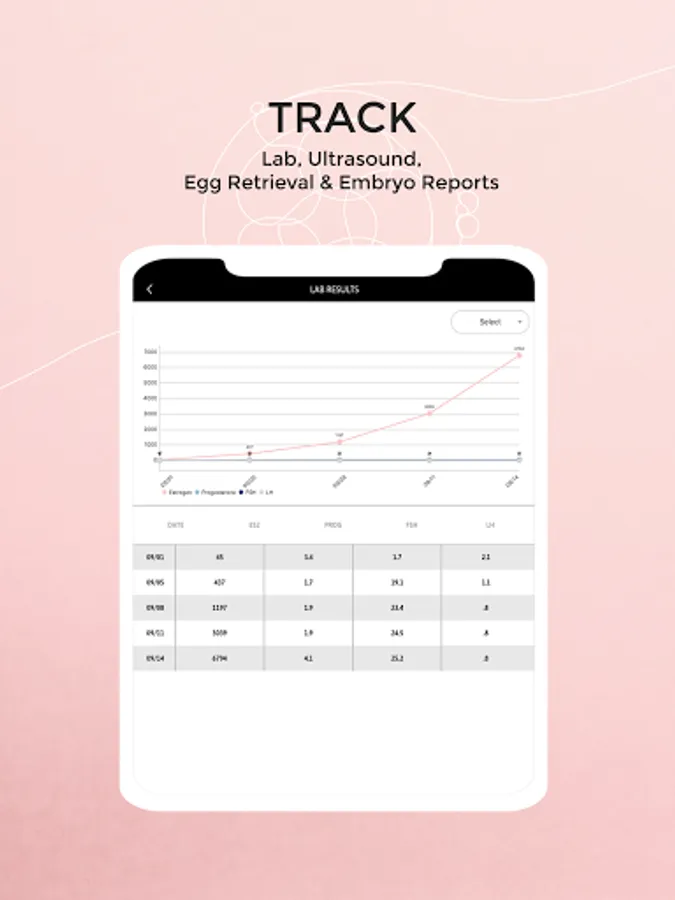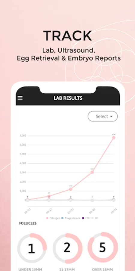 • Track, Graph and compare all of your cycles’ results like Labs, follicle counts, egg, embryo and transfer reports.