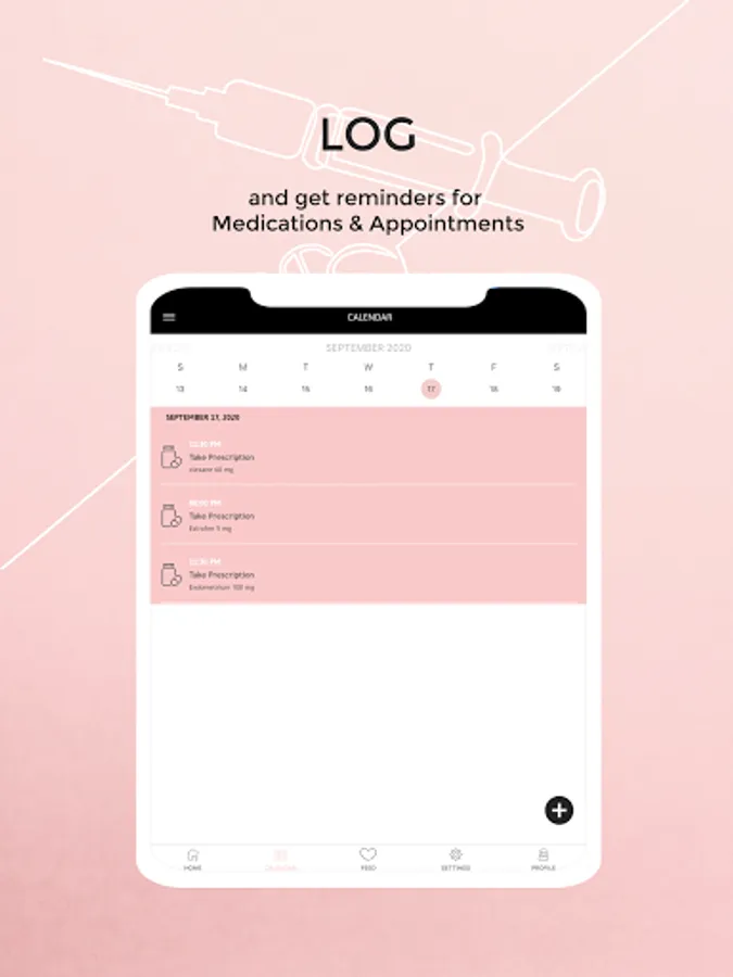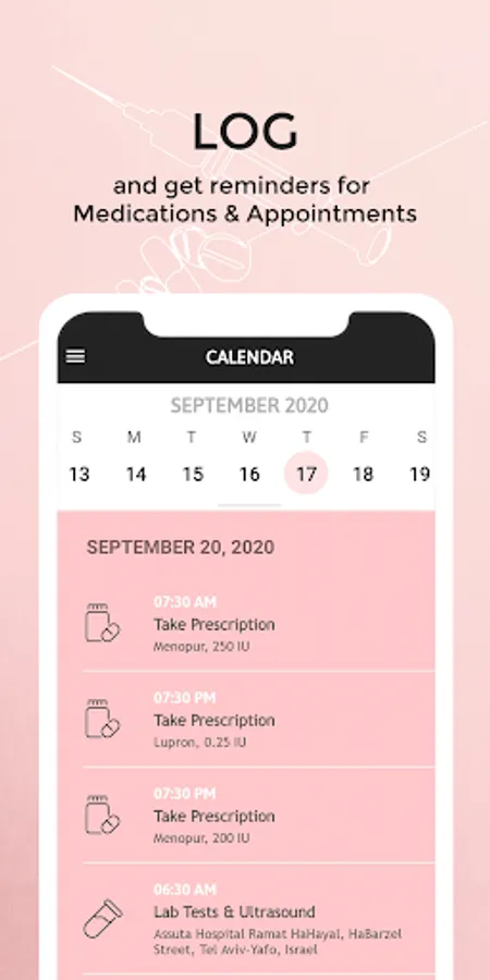 • Log all of your IVF appointments and medications using Embie’s unique calendar that tracks all things related to your treatment in one easy place.