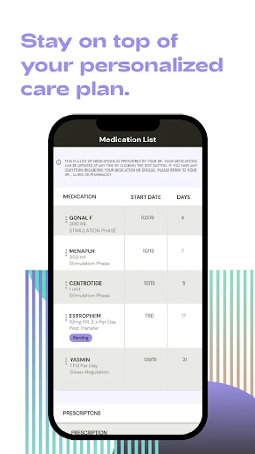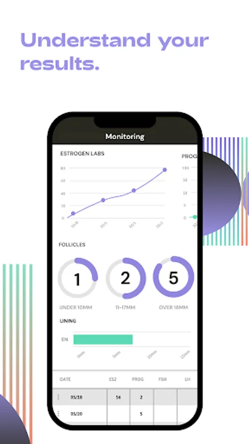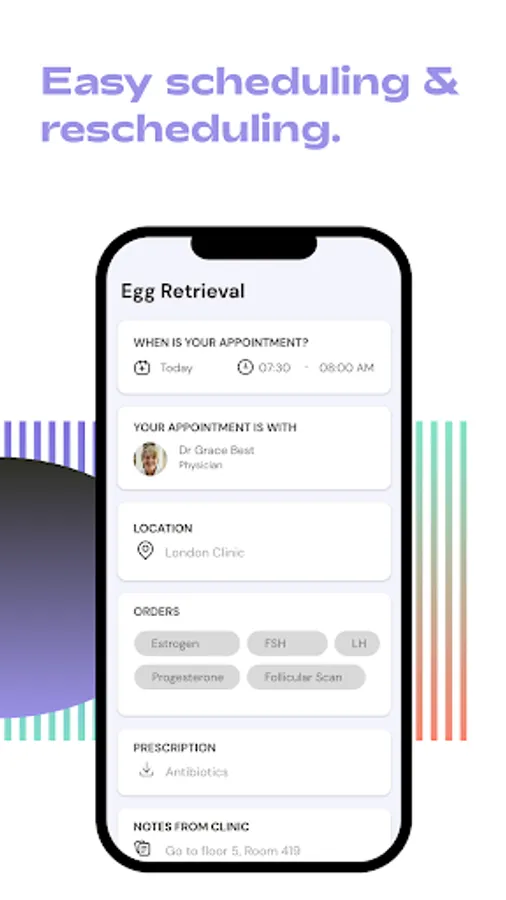 • A complete overview of your treatment journey with appointment logs, medication schedules, fertility cycle results, symptoms, and health parameter tracking.