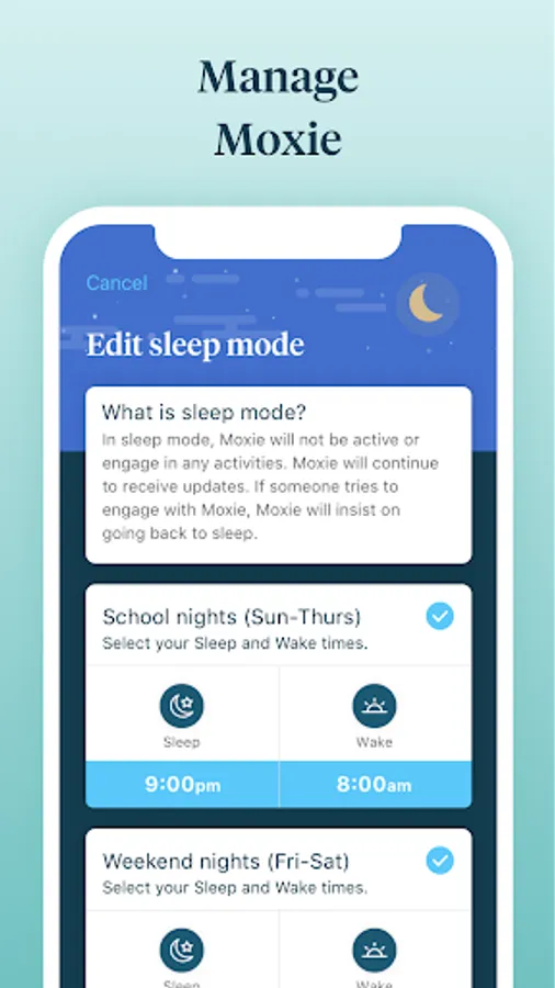The Embodied Moxie Parent App is a companion app to Moxie, a revolutionary new robot for children designed to help promote social, emotional, and cognitive development through everyday play-based learning and captivating content.