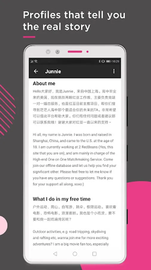 2RedBeans is the biggest and most active dating app for Chinese singles. We are the go-to destination for those who are looking for a place with users who understand and have a lot in common with their culture and background.