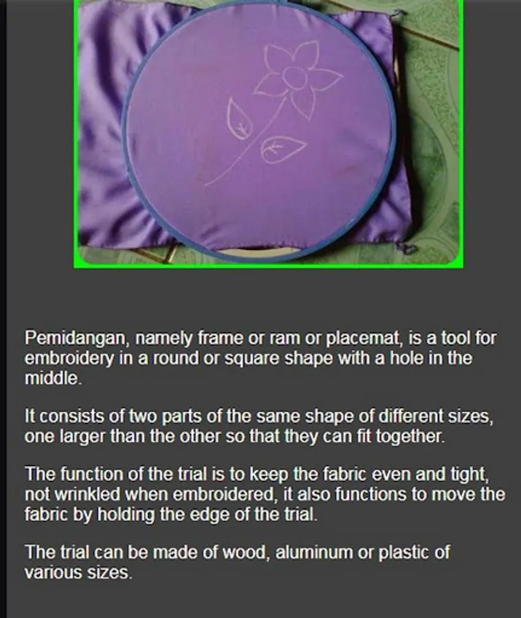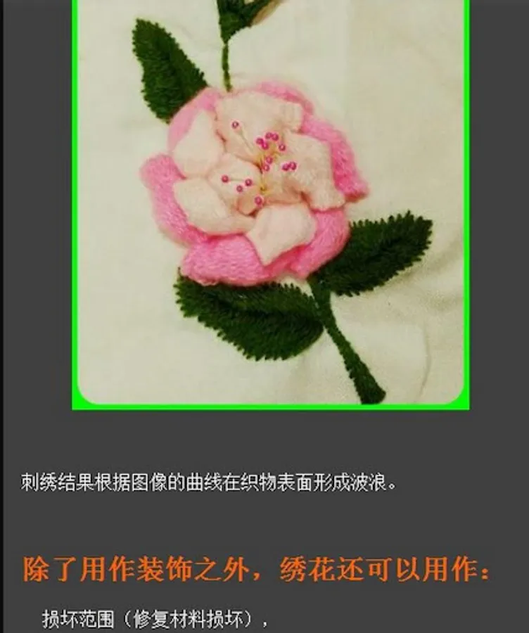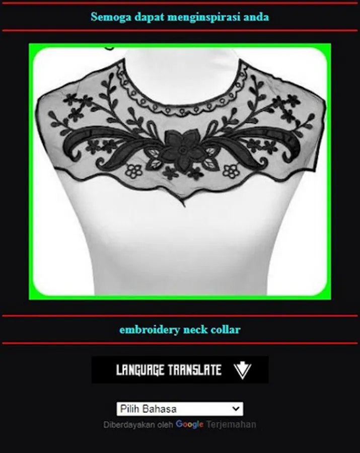 This application contains pictures of needlepoint art on the neck. There are many choices and embroidery models that are displayed in this application.