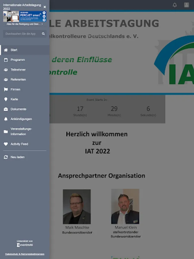 The IAT 2022 app is the event app for the INTERNATIONAL WORKING CONFERENCE of the Federal Association of Food Inspectors in Germany from 26.09. – 09/28/2022 in the Van der Valk Hotel Berlin Brandenburg. The event schedule, speakers and topics, the exhibitor fair and much more are provided via the app.