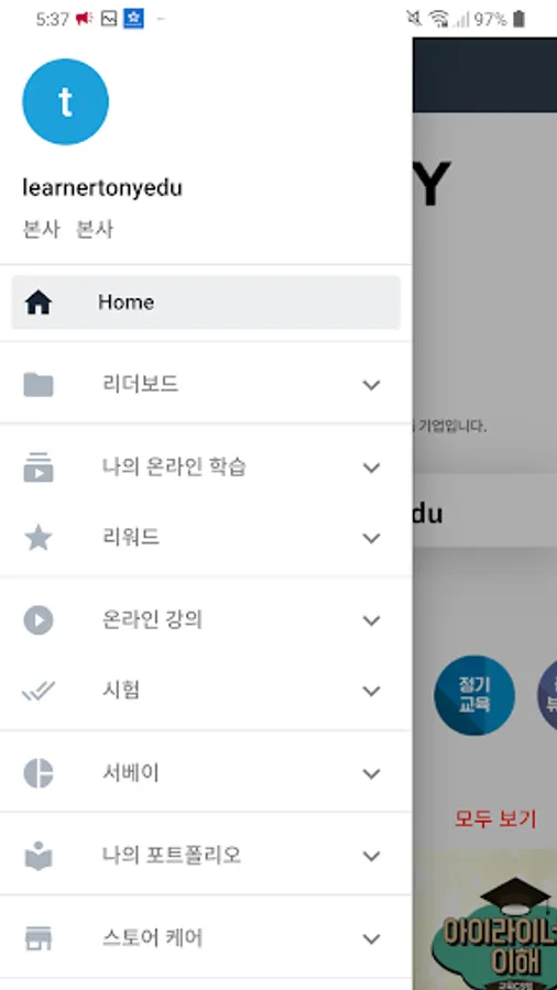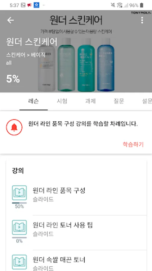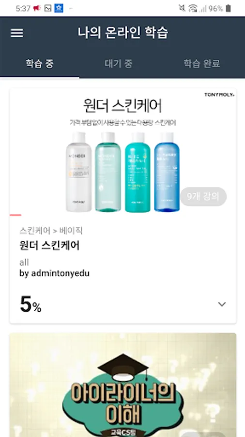You can learn video, image, PDF, HTML5 type content and check the progress rate.