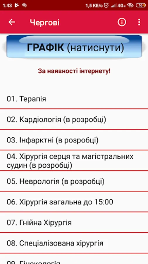 - Schedule of duty of urgent hospitals (wards) according to profile.