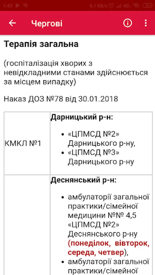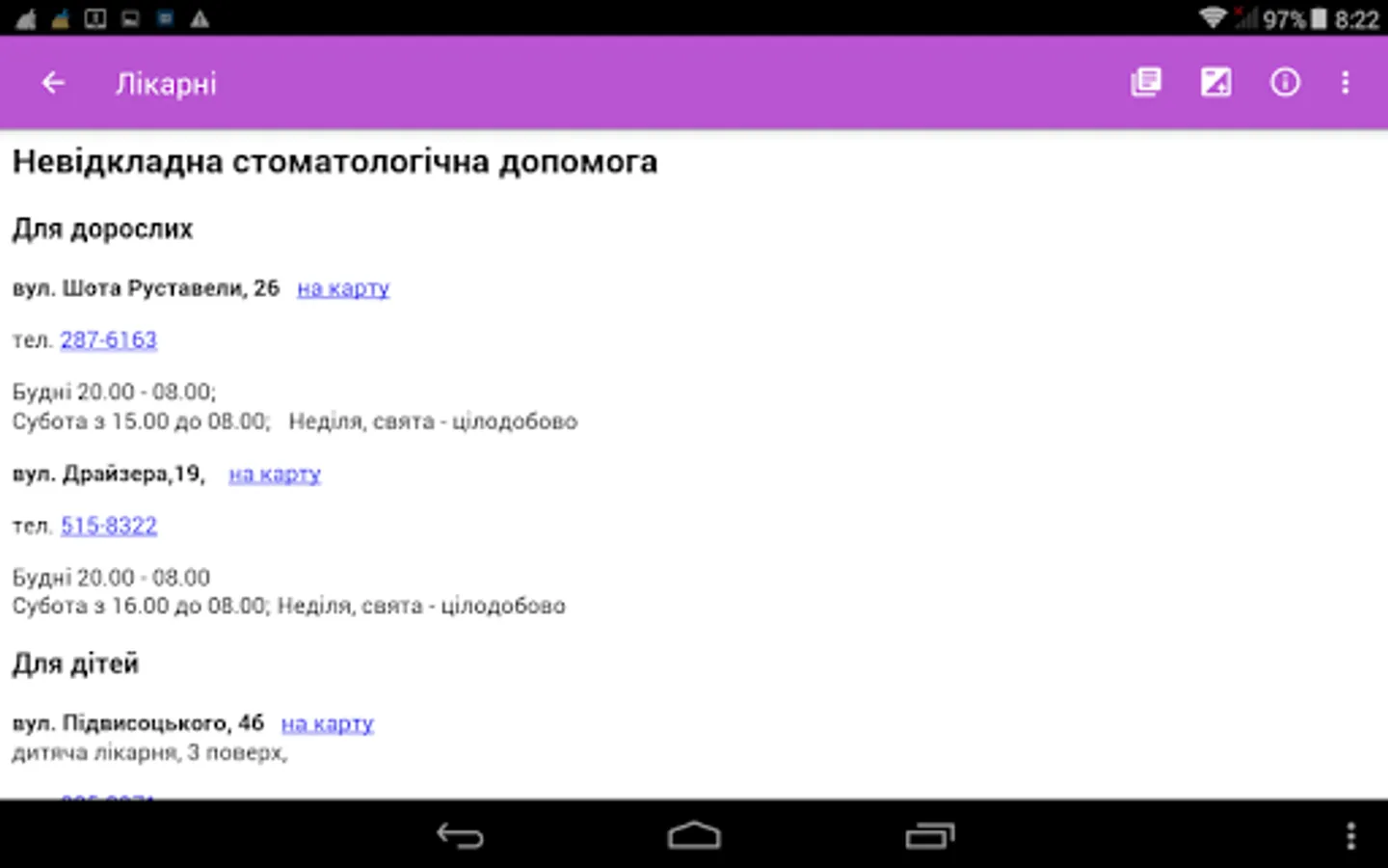 - Addresses and contact telephones of health care institutions in Kyiv;