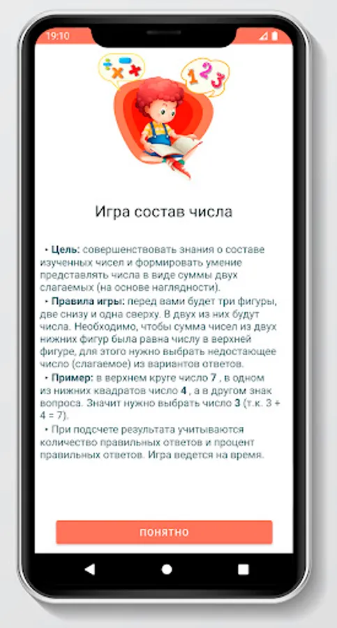 🎯 The purpose of the game: to improve knowledge about the composition of the studied numbers and form the ability to represent numbers as the sum of two terms (based on visibility).