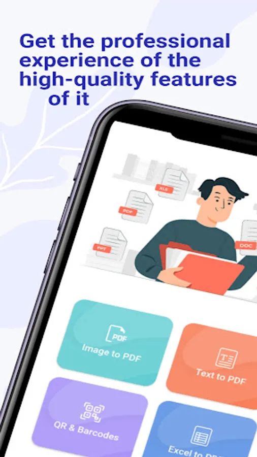 Introducing the powerful and beautifully designed PDF converter app, now available on the Google Play Store! This app allows you to easily convert a variety of file formats into PDFs, including images, text, QR codes, and even Excel spreadsheets.