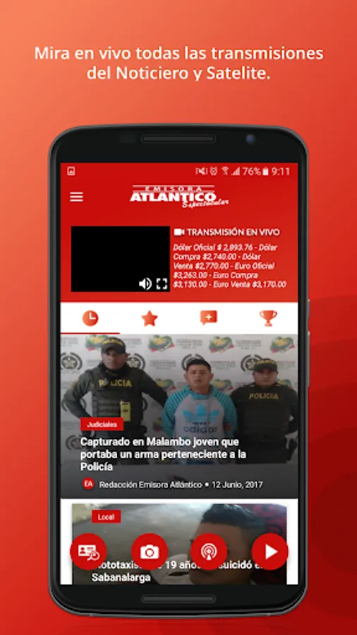Atlantic station presents its new and modern mobile application, now not only can listen to us, we can also see, read, be a reporter, consult your lost documents, view statistics of your favorite teams and listen to the podcast. In your cell Jorge Cura leader in news broadcasts all matches of the Junior de Barranquilla and the most varied musical programming.