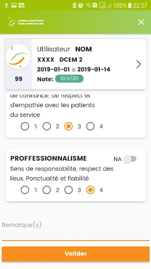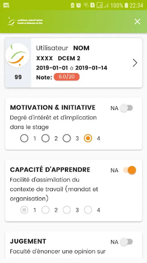 Application for the assessment of personal competencies of medical, dental and pharmacy students as well as those of nursing
