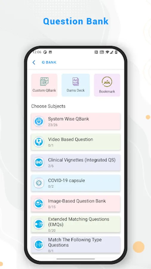 DAMS Question Bank (DQB) – The secret of DAMS students doing so well in exams for last two decades is now available for subscription on this app with 14000 handpicked questions with explanations by the faculty members, with special sections on integrated clinical vignettes, Extended matching, match the following and multiple completion type Questions. Visual questions and clinical learning are the focus of the QBank. Custom Tests and flash cards with spaced repetition are also popular tools in this section.
