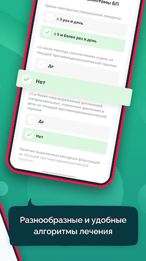 The scientific content of this mobile application was developed and adapted by leading Russian experts and specialists in the field of therapy and management of patients with Parkinson's disease, intended exclusively for current healthcare professionals, based on the clinical guidelines of the Russian Ministry of Health and scientific communities, and is for informational and reference purposes.