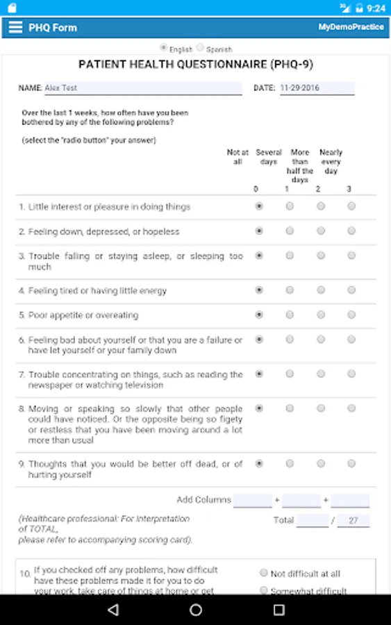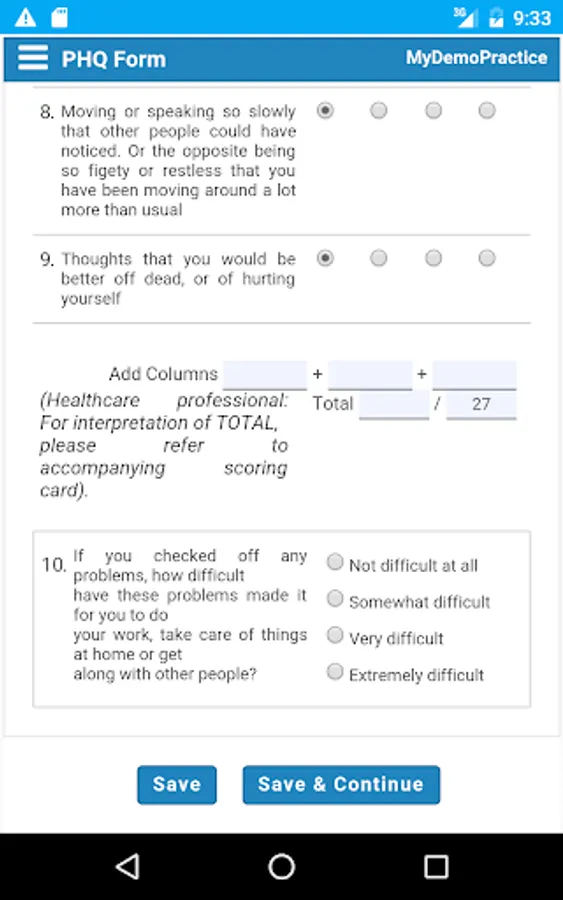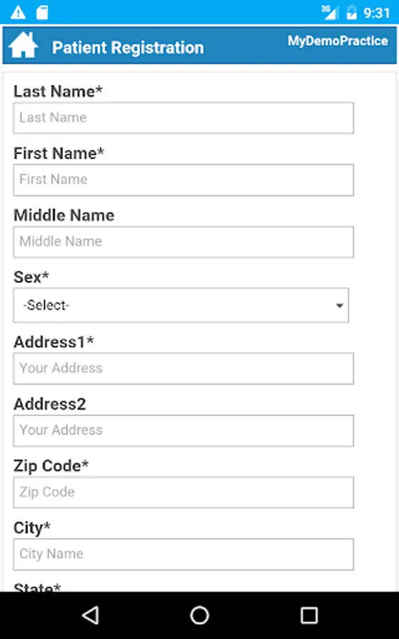 Patient Self registration kiosk in waiting room area. Patient can enter demos, insurance info and review privacy HIPPA form, financial responsible form or any forms specific to your practice like Histories, PHQ9 or ROS and sign them electronically.