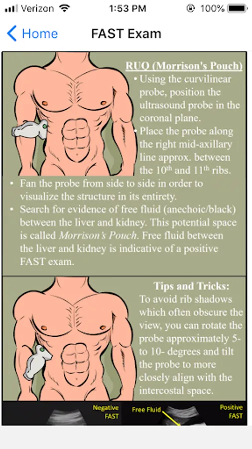 From learning how to perform the FAST exam to evaluating for AAA (abdominal aortic aneurysms) to even checking for papilledema, ultrasound has become an absolutely invaluable tool in the emergency department and beyond. EM Ultrasound takes you step-by-step on how to perform the FAST exam, Cardiac, Aortic, Renal, Gallbladder ultrasounds and more. This app explains proper probe placement, highlights tips and trick on how to obtain clear views and compares normal vs abnormal images to assist with gain a thorough understanding. EM Ultrasound is the easiest and most convenient way to learn ultrasound skills; it's like having an ultrasound instructor in the palm of your hand!