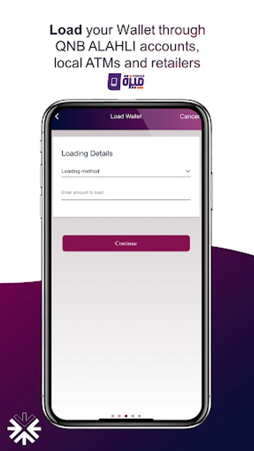 • Load your E-Wallet with ease through different channels such as your QNB ALAHLI Accounts, Debit Card, or by visiting any of retailers that are scattered across the governates or through any ATM that displays Meeza digital logo