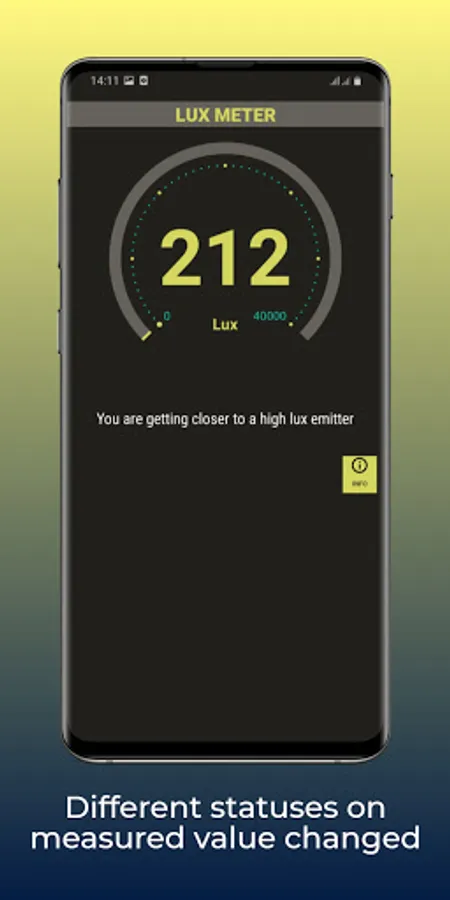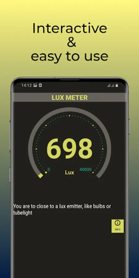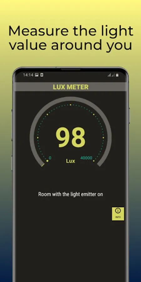 This useful tool uses the ambient luminosity, sensor built-in your mobile device and shows value lux. The measured value of illumination depends on the amount of incoming light and the area over which it is spread.