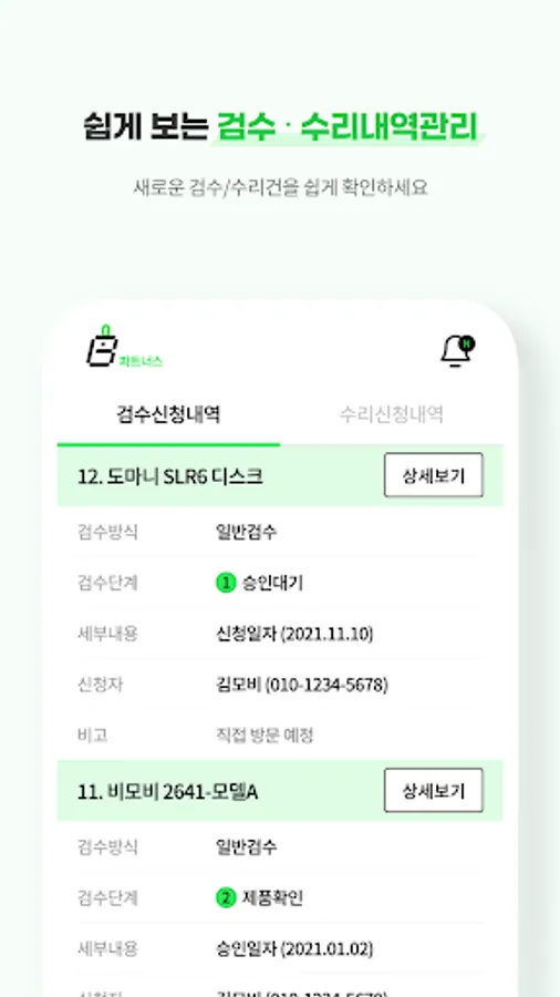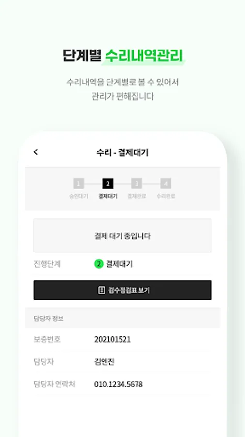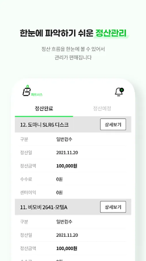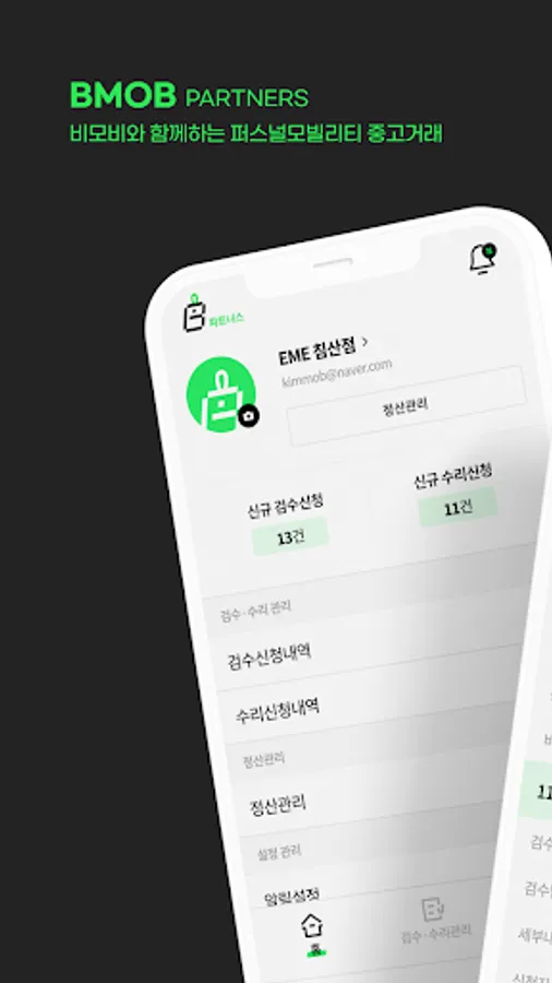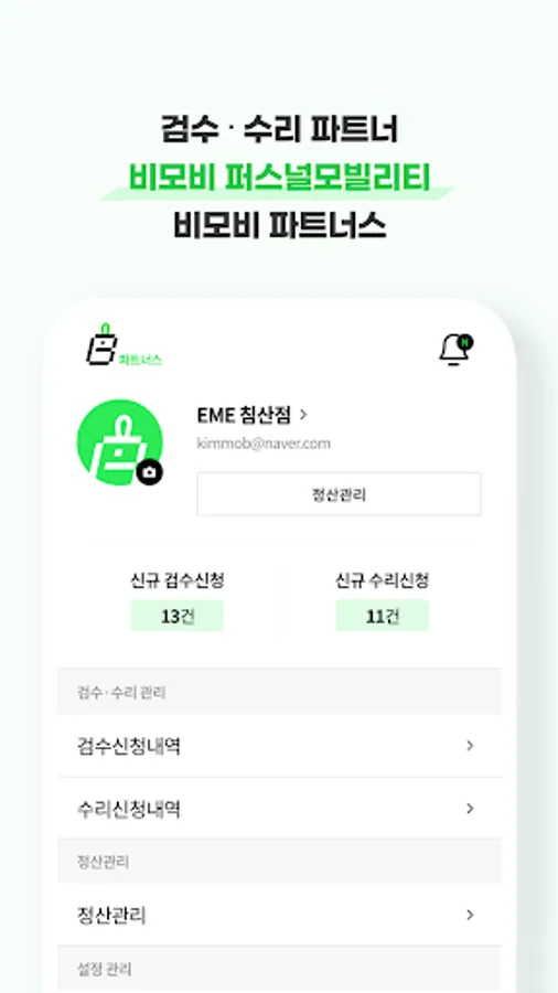 A system in which a partner who provides inspection, warranty, and repair, which is the main service of the BMOB platform, checks the customer's application service and settles the fee for the provided service