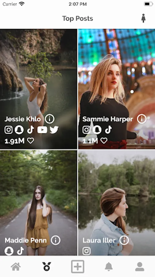Attract reinvents the way posts are shown and interacted with. Instead of your typical style news feed. Users will be presented posts in the form of a swipe card. To like a post users can swipe right or dismiss the post by swiping left. The posts that receive the most likes will make it onto the top posts page. The higher number of likes a post has, the higher it will be on the page. Only posts uploaded within 24 hours are shown on the main pages of the app. Upon signing up users will have the option to enter their usernames from multiple other social media platforms. When other users see any of your posts they will be just one click away from following you on the social media platform that they choose.