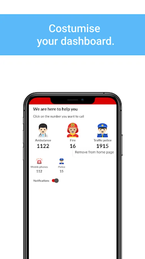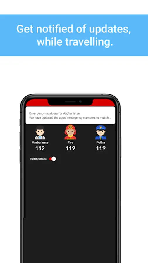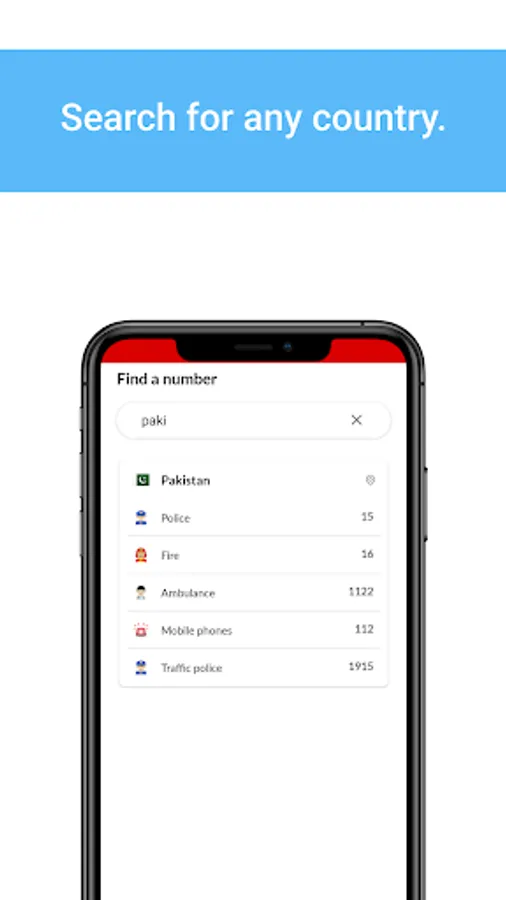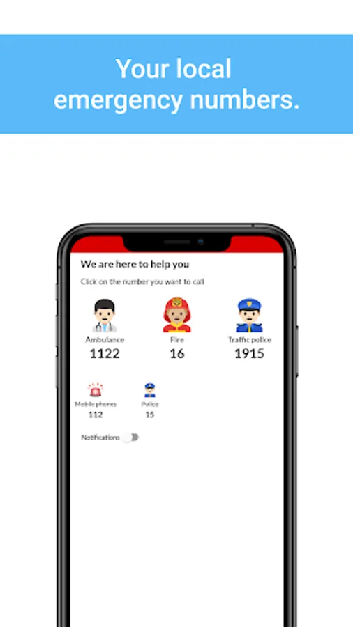 The app finds your location and searches our extensive database of local based emergency services around 190 countries in the world.