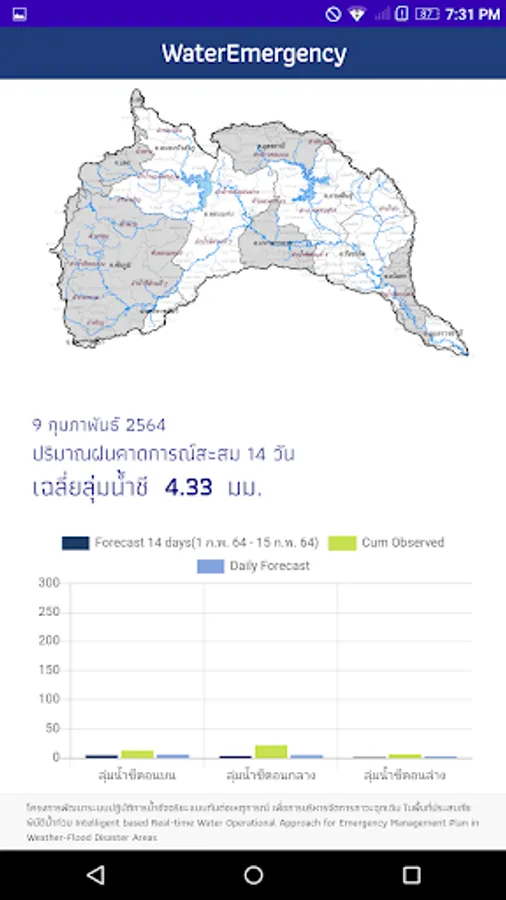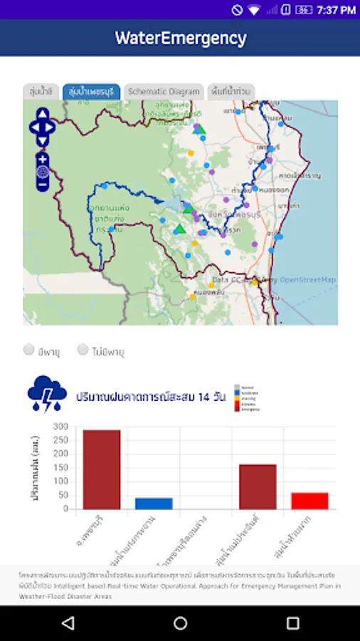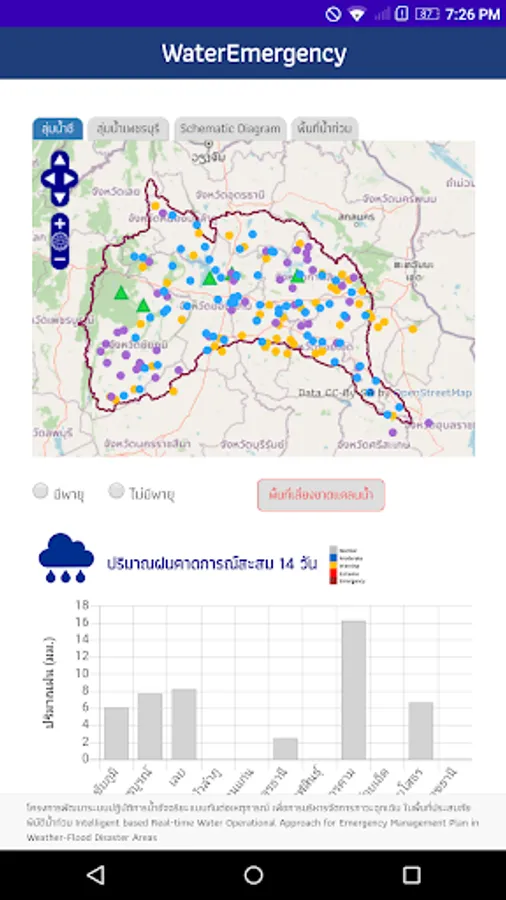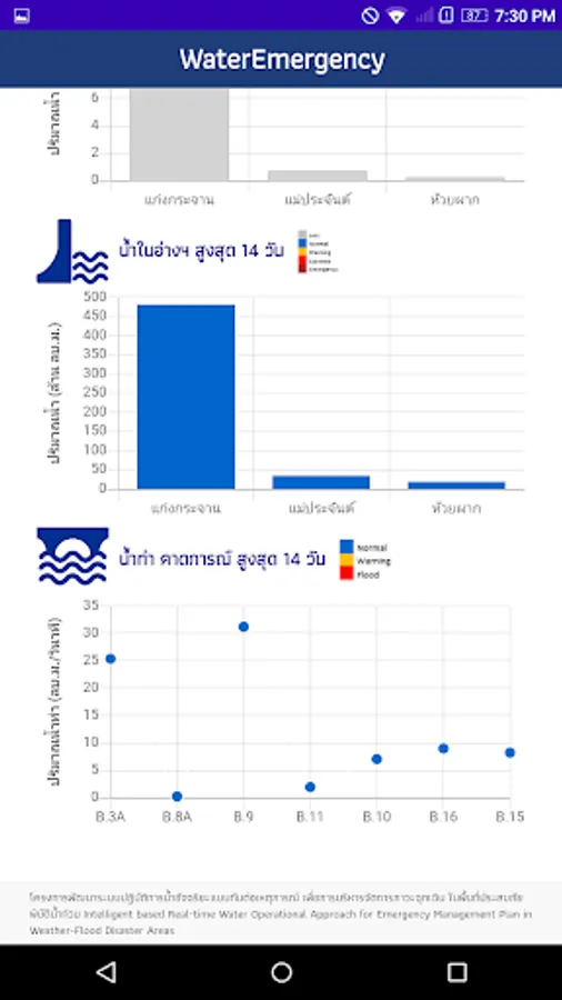 แอปพลิเคชัน ระบบปฏิบัติการน้ำอัจฉริยะแบบทันต่อเหตุการณ์ เพื่อการบริหารจัดการภาวะฉุกเฉิน ในพื้นที่ประสบภัยพิบัติน้ำท่วม โดยศูนย์วิจัยวิศวกรรมน้ำและโครงสร้างพื้นฐาน มหาวิทยาลัยเทคโนโลยีพระจอมเกล้าพระนครเหนือ เป็นแอปพลิเคชันสำหรับติดตามสถานการณ์น้ำและระดับการเตือนภัยพื้นที่วิกฤติน้ำท่วมฉับพลันในพื้นที่ลุ่มน้ำชี และลุ่มน้ำเพชรบุรี ประกอบไปด้วย การติดตามปริมาณฝนคาดการณ์ โดยสามารถเข้าดูข้อมูลได้ทั้งปริมาณฝนคาดการณ์รายฤดูกาล และปริมาณฝนคาดการณ์สะสม 14 วัน โดยแอปพลิเคชันจะมีการอัปเดตสถานการณ์น้ำเป็นรายวัน และสามารถใช้ในการเข้าถึงข้อมูลการคาดการณ์ปริมาณน้ำไหลเข้าอ่างเก็บน้ำคาดการณ์ทั้งอ่างเก็บน้ำขนาดใหญ่และขนาดกลาง เพื่อติดตามปริมาณน้ำในอ่างเก็บน้ำ โดยสามารถดูข้อมูลคาดการณ์เป็นรายฤดูกาล และข้อมูลคาดการณ์สะสม 14 วัน และสามารถติดตามปริมาณน้ำท่าคาดการณ์ในสถานีน้ำท่าที่สำคัญ นอกจากนี้ยังมีการแสดงข้อมูลพื้นที่น้ำท่วม และพื้นที่เสี่ยงขาดแคลนน้ำ ที่สามารถใช้ในการเตือนภัยให้แก่เกษตรกรและประชาชนทั่วไป ซึ่งแอปพลิเคชันนี้ได้มุ่งเน้นให้แก่ผู้ใช้งานหลัก คือ เจ้าหน้าที่ปฏิบัติการของกรมชลประทานใช้งานในการติดตามสถานการณ์น้ำคาดการณ์เพื่อประกอบการตัดสินใจวางแผนรับมือได้อย่างทันต่อเหตุการณ์