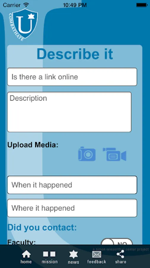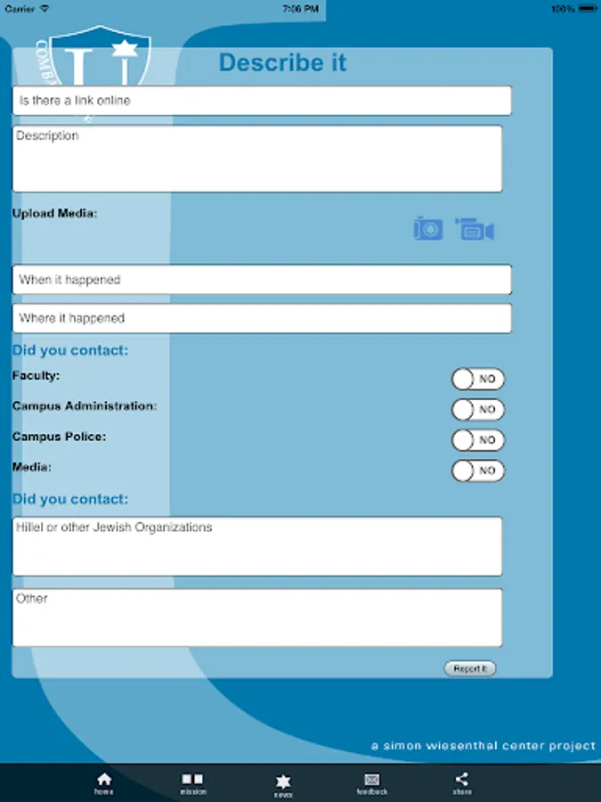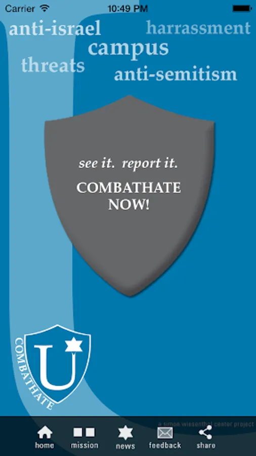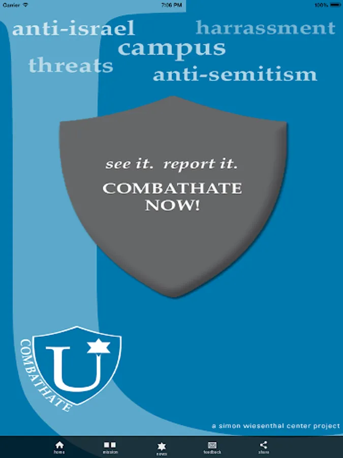 The Simon Wiesenthal Center's CombatHateU app is designed to help Jewish students and other supporters of Israel deal with hate, bias, anti-Semitism and extreme anti-Israel harassment on campus.