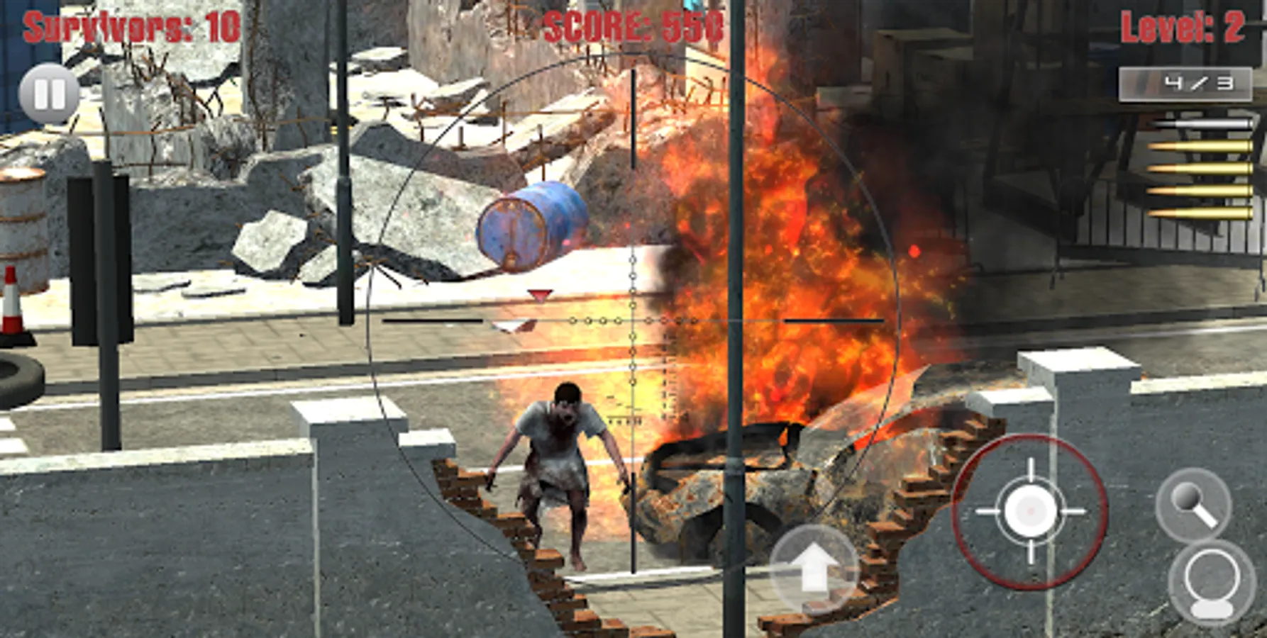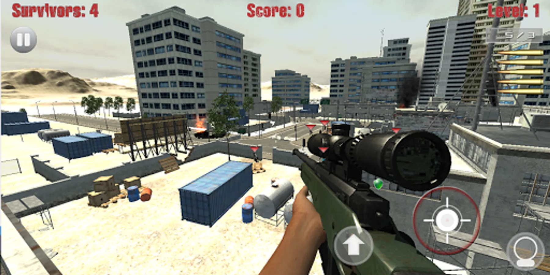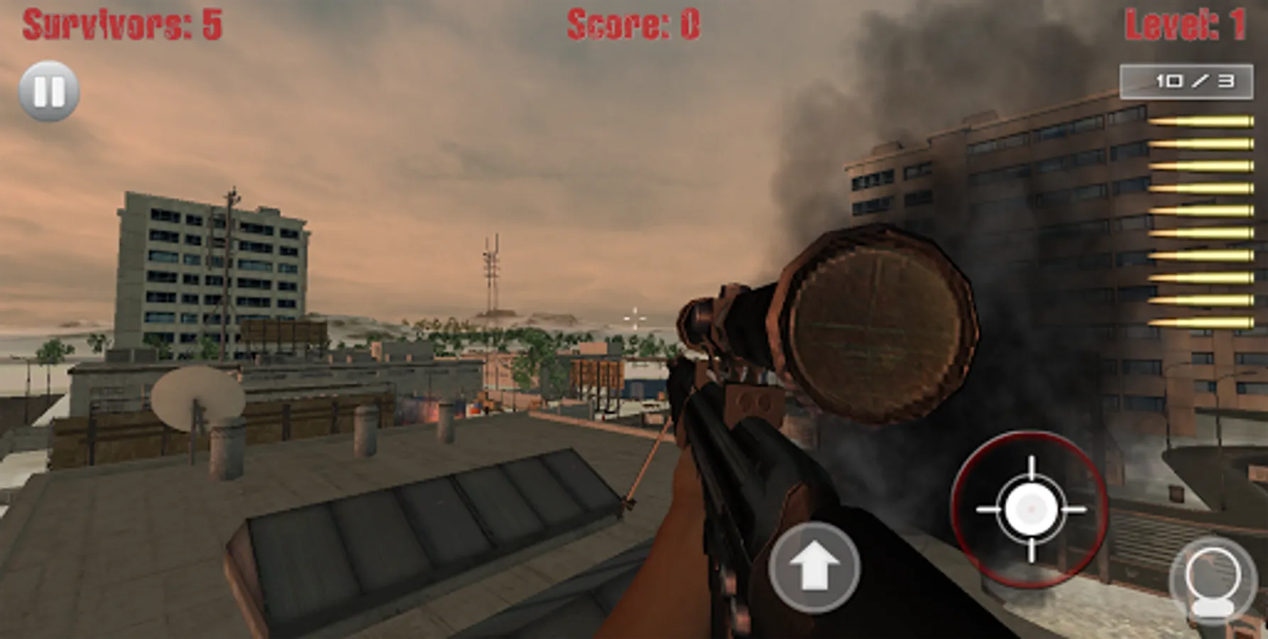 Sniper Shooter - Zombie Vision is the ultimate offline playable mobile sniper shooter game with the free movement of a first person shooter. Your job is to protect the area by sniping zombies before they enter the areas the survivors are taking cover. Challenge yourself to see how many zombie kills and head shots you can obtain, or how far of a shot you can pull off.