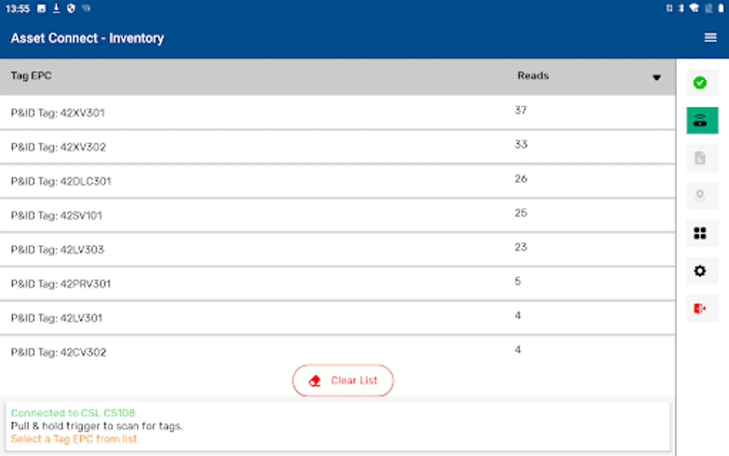 Asset Connect Software is used along with a handheld RFID reader to communicate with the Emerson Asset Management Tag. This provides the functions necessary for both reading and writing critical asset information and service details on the Asset Management Tag. Asset Connect Software communicates to the UHF RFID reader/writer using Bluetooth wireless technology.