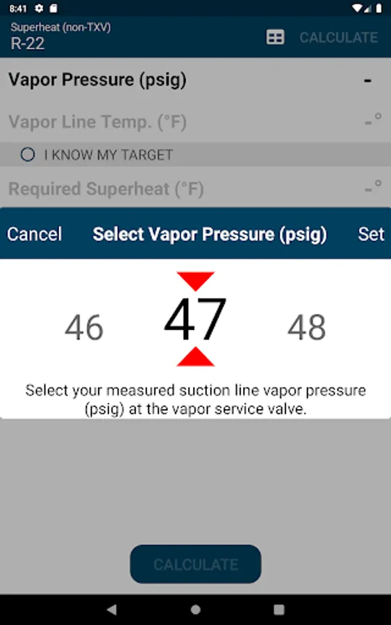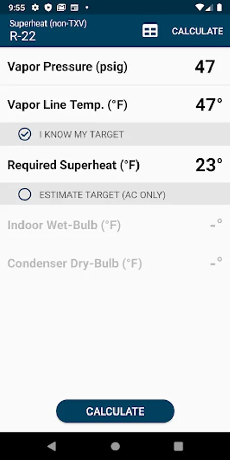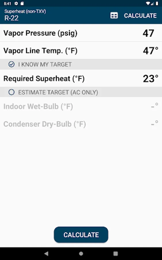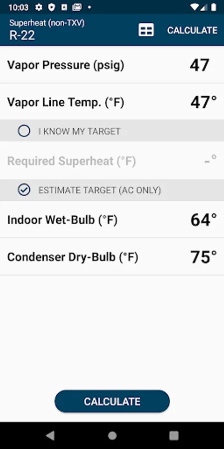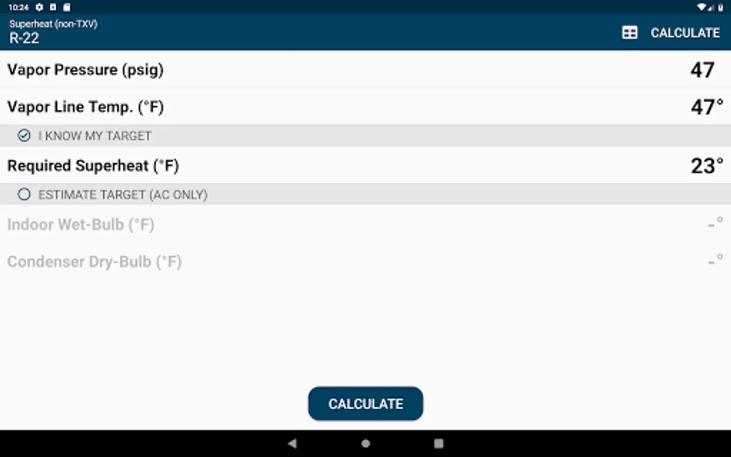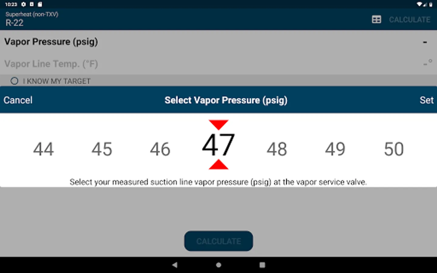 Instant mobile refrigerant charge calculator for HVACR applications.